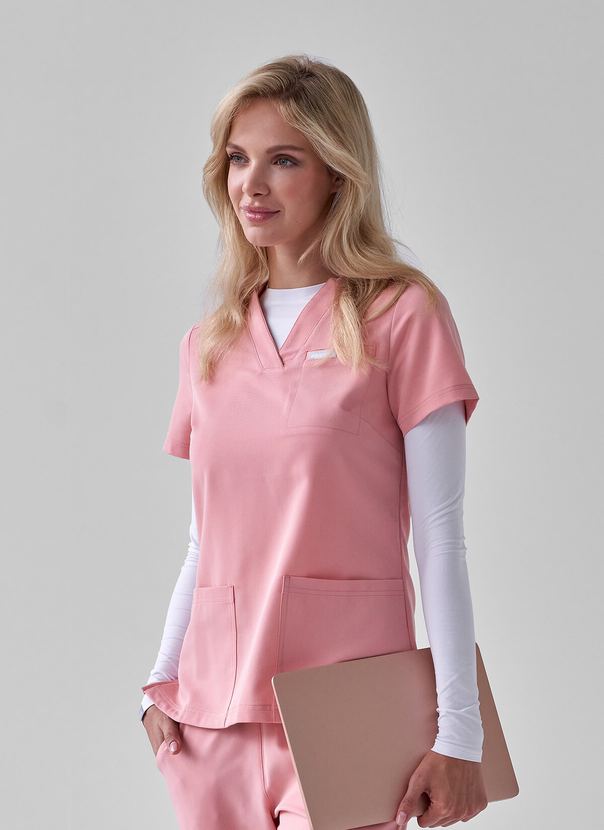 Moodsy Longsleeve to bluza medyczna z długim rękawem, możesz nosić jako element kompletu medycznego lub samodzielnie – zależnie od pogody, miejsca i trybu pracy.