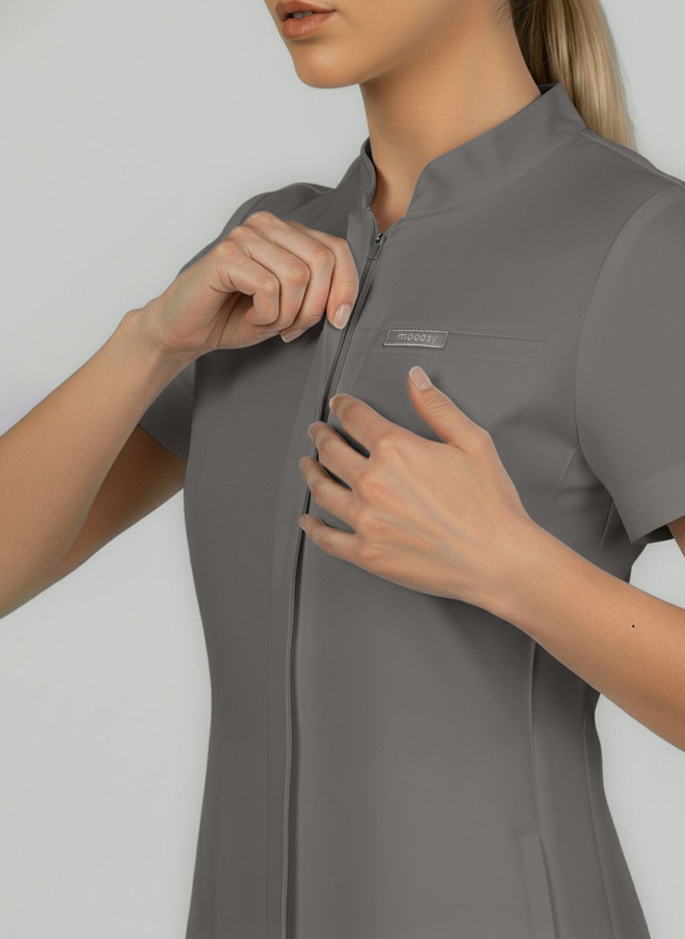 Jest coś kojącego w barwach, które nie krzyczą, a mimo to zapadają w pamięć. Classy Gray to propozycja dla kobiet, które cenią spokojną elegancję – ale potrzebują ubrania, które naprawdę działa i wyróżnia się kolorem. Szara bluza medyczna wprowadza spokój i świeżość, nie tracąc nic z profesjonalnego charakteru. Doskonale sprawdzi się u lekarek, pielęgniarek, położnych, fizjoterapeutek i studentek medycyny, które chcą wyglądać schludnie w odzieży medycznej, ale z kobiecym akcentem.