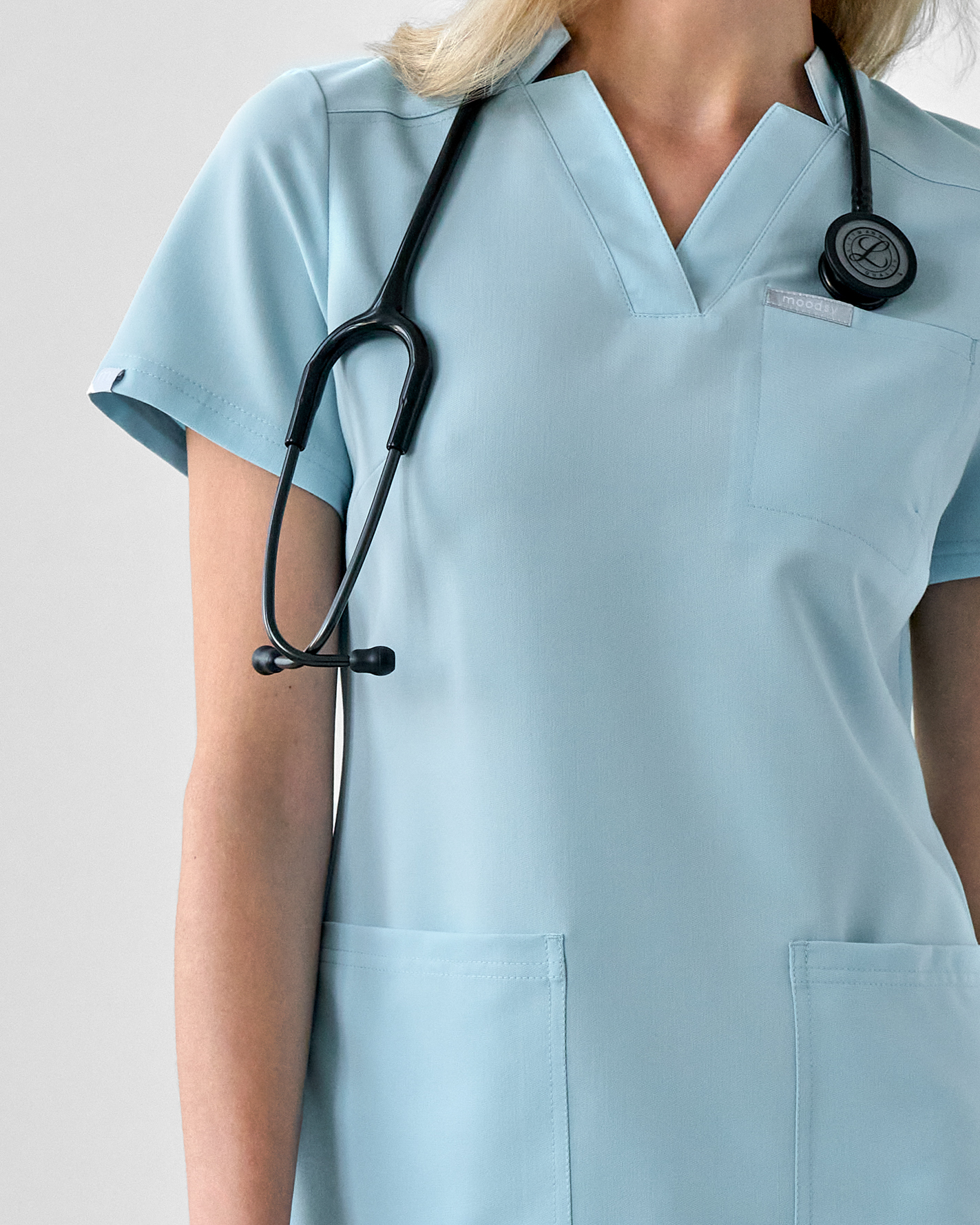 Wykonana z technicznej tkaniny Moodsy Air, oferuje pełną swobodę ruchu, idealną cyrkulację powietrza i odporność na zagniecenia – nawet po wielogodzinnym dyżurze nadal wygląda świeżo. Dzięki technologii 4D Stretch, materiał idealnie współgra z ciałem – bez napięcia, bez ograniczeń.
