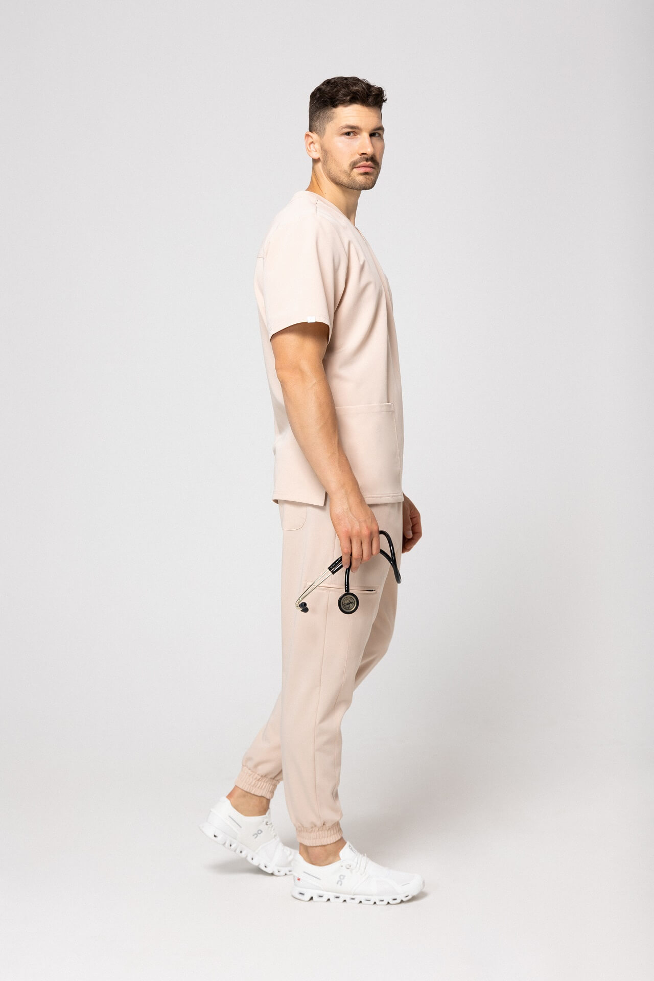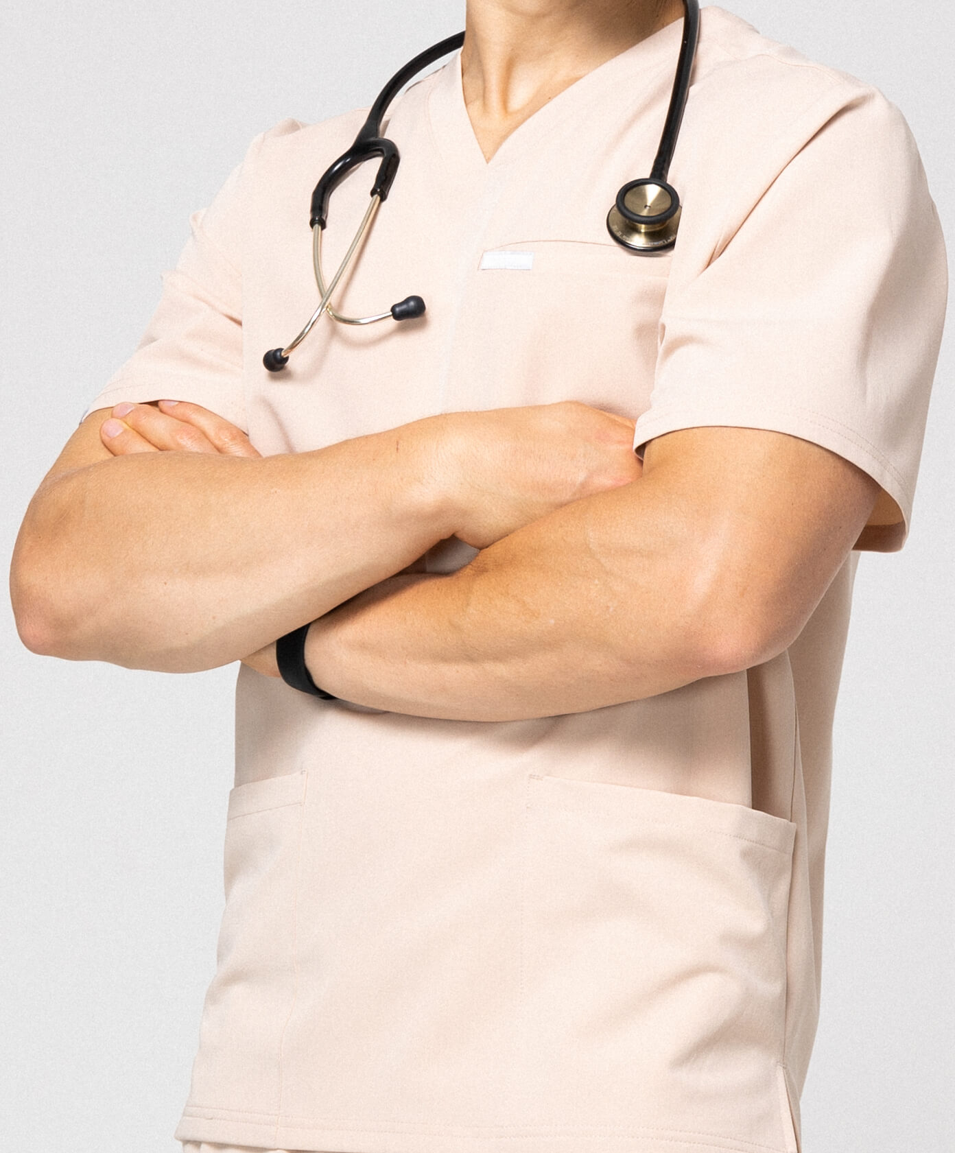 The durable and flexible fabric used to sew the SPORTY range ensures that nothing will restrict your movement. We thought out this set in every detail so that you can fully focus on your work, feeling comfortable and sporty at the same time. The SPORTY scrub set has eight pockets in total.