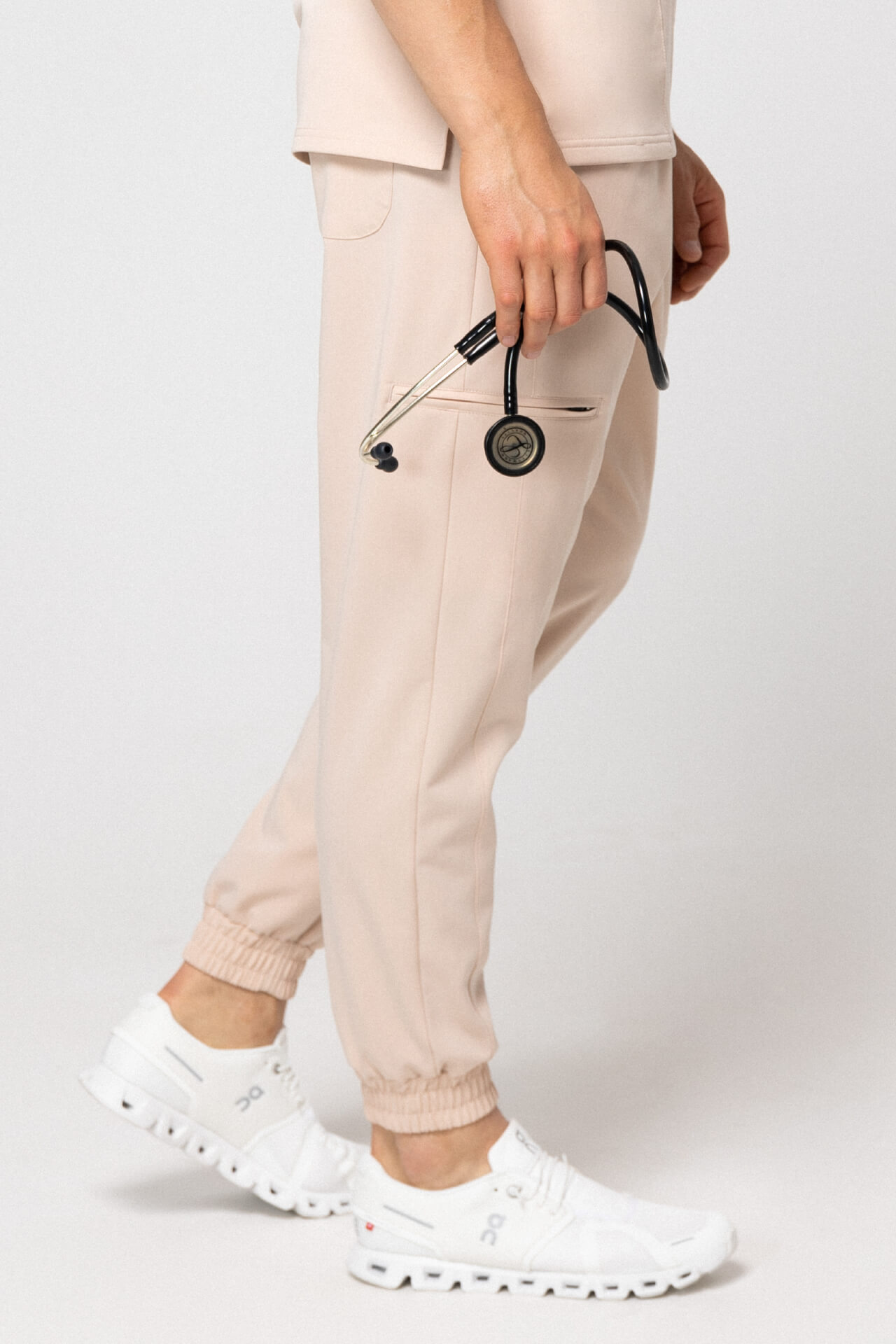 The durable and flexible fabric used to sew the SPORTY range ensures that nothing will restrict your movement. We thought out this set in every detail so that you can fully focus on your work, feeling comfortable and sporty at the same time. The SPORTY scrub set has eight pockets in total.