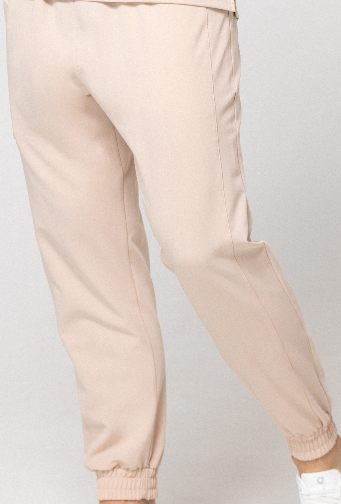 - comfortable mid-rise trousers with an elastic waistband and a drawstring for easy adjustment at the waist.